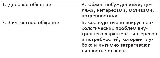 2) По соотношению «цель – средство»: деловое общение, в котором происходит обмен деятельностью, информацией и опытом, предполагающим достижение определенного результата, решение конкретной проблемы или реализацию определенной цели, т. е. общение как средство достижения целей, и личностное общение, общение «по душам», где само общение выступает как цель. Деловое общение реализуется в формах: деловая беседа, деловые переговоры, деловые совещания, публичные выступления.