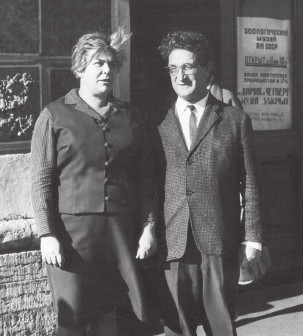 У входа в Зоологический институт Академии наук СССР Рахиль Ефремовна и Соломон Самуилович Шульманы, сентябрь, 1968 г.