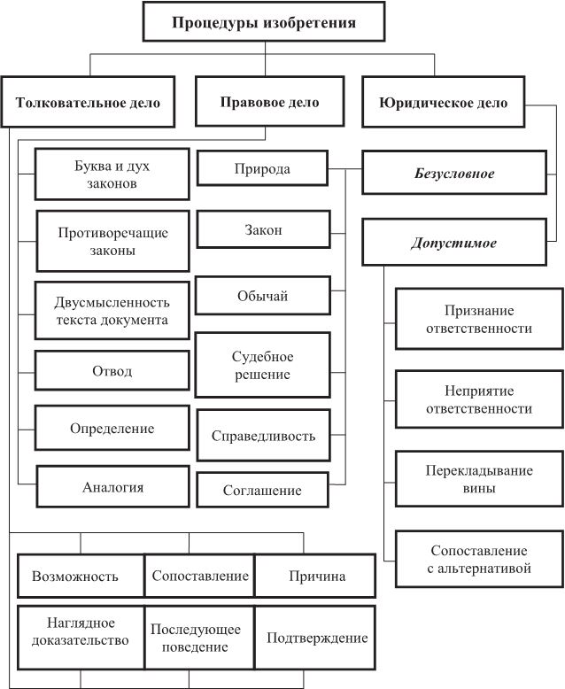 Наиболее детально в «Риторике» разработаны процедуры изобретения судебных речей, соответствующих видам дел, различающихся по признаку существа дела (в современных терминах), что показывает рис. 1.