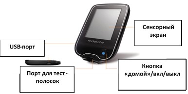 Считывающее устройство (или сканер/ридер) – компактный и легкий прибор с цветным сенсорным экраном, который удобно держать в руке, используется для отображения и сбора показаний сенсора, а также включает в себя множество дополнительных функций (встроенный глюкометр, тестирование уровня кетонов в крови, система анализа трендов гликемии, будильник, заметки с возможностью записи информации об инъекциях инсулина, питании, физической активности и пр.) и настроек (целевой диапазон гликемии, система напоминания, настройка звуковых сигналов, язык меню, настройка времени, даты и пр.), которые обеспечивают высокий уровень персонализации устройства.