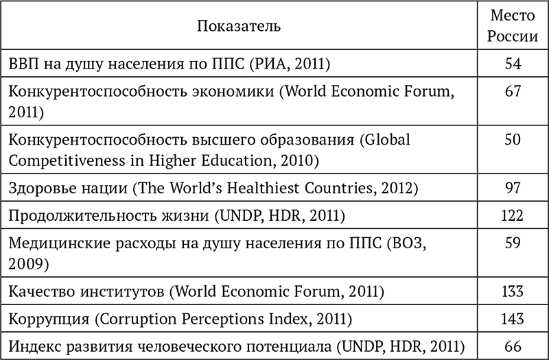 Именно в области человеческого капитала сосредоточены, если не брать в расчет природные богатства, основные социально-экономические преимущества России в глобальной экономике. Пока этот ресурс неосмотрительно растрачивается: Россия является поставщиком идей и мозгов для других стран. В будущем межстрановая конкуренция за людей и разрабатываемые ими новые идеи и технологии станет значительно более острой, чем конкуренция за финансовые и природные ресурсы, поэтому преодоление отставания в этих областях становится особенно актуальным.