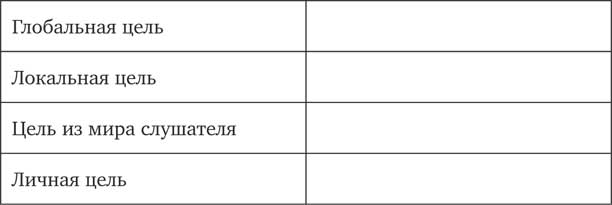 В этой главе мы поговорим о том, зачем нужно определять цели для каждого публичного выступления, почему именно с их постановки начинается подготовка речи и что бывает, если цели сформулированы некорректно. Также мы отметим, какими бывают цели: чем глобальная отличается от локальной, а личная – от цели из мира слушателя. Расскажем, как и зачем формулировать главную мысль выступления.