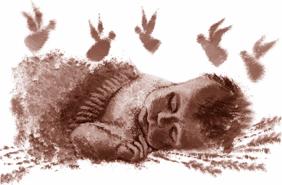 Человек хотел пойти дальше. Но овцы лежали, так тесно прижавшись друг к другу, спина к спине, что он не мог пробраться между ними. Тогда он прямо по их спинам пошёл вперёд, к костру. И ни одна овца не проснулась и не пошевелилась…