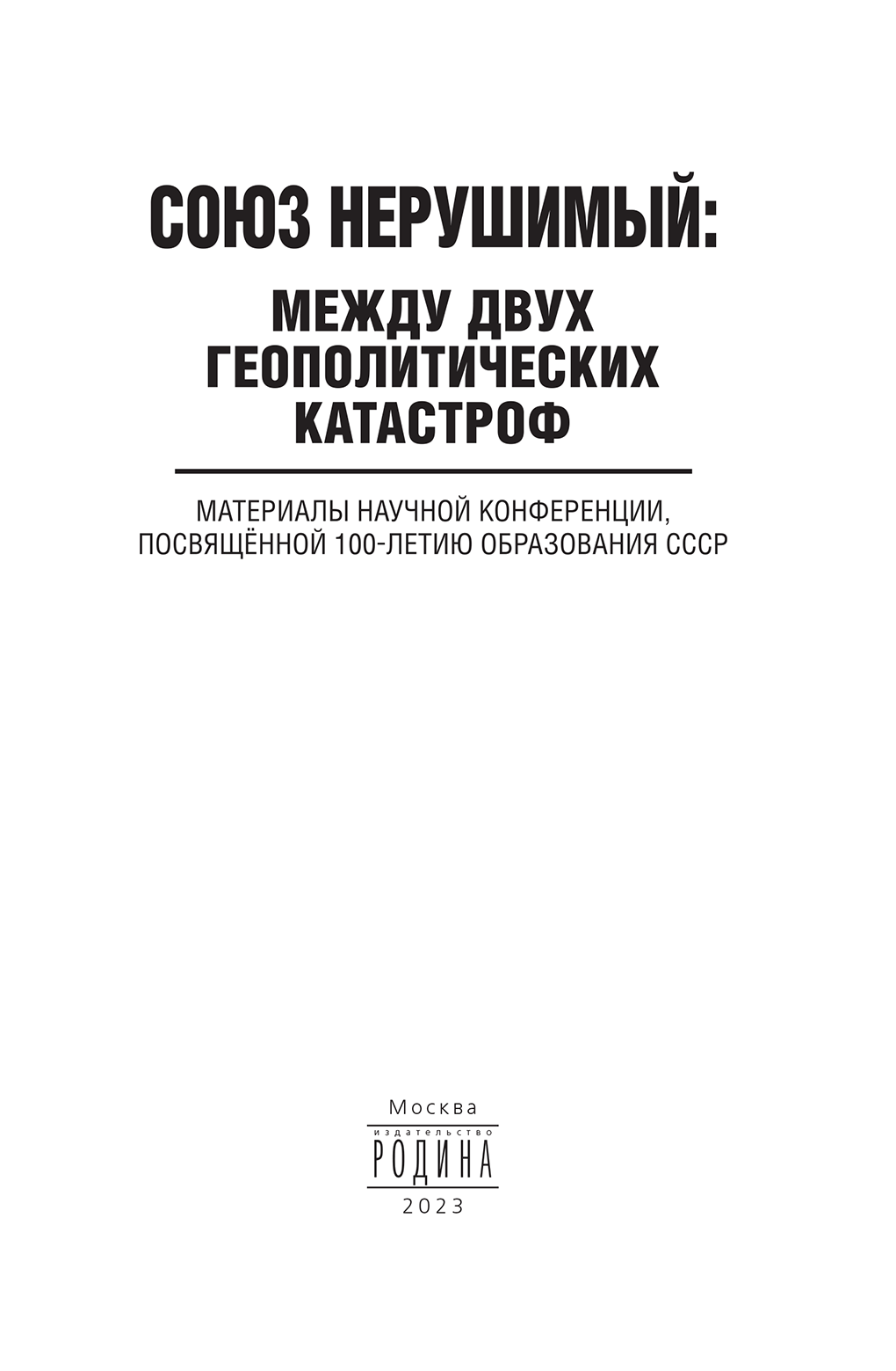 Союз нерушимый: между двух геополитических катастроф. Материалы научной конференции, посвящённой 100-летию образования СССР
