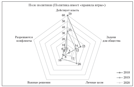 Рис. 4. Поле политики, 2018–2020 гг., в %