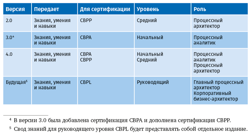 Четвертая версия Свода знаний по управлению бизнес-процессами ABPMP стала ответом на растущую потребность в информации о путях карьерного роста специалиста по процессному управлению и о современных направлениях развития дисциплины и технологий BPM, помогающих трансформировать организации с целью повышения их конкурентоспособности в глобальной экономике. Становление и карьерный рост специалиста по процессному управлению определяются тремя составляющими: знаниями, умениями и навыками. На каждом уровне профессионального развития, от начальной позиции до руководящей, они закрепляются соответствующей сертификацией.
