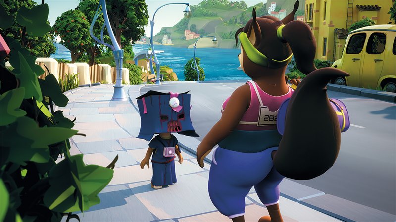 Вскинув сумку на плечо, она отправилась в спортзал. Помощник детектива решил проследить за сестрой. И вот прямо на глазах у Чинка появился злодей в маске-коробке и синем плаще! Он выпрыгнул на дорожку перед Ниной и заявил: