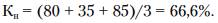Пусть, например, Рк рассчитан по ряду показателей и в среднем составил 4 балла по пятибалльной шкале (т. е. равен 80 %), Пр = 35 % и Ор = 85 %. Тогда