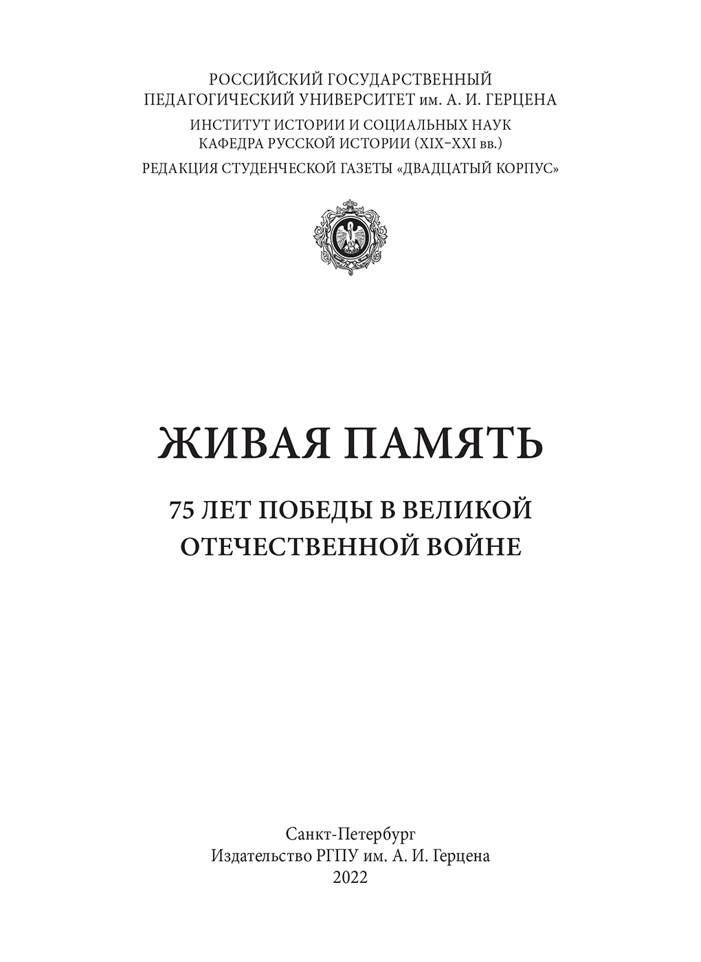 Печатается по решению кафедры русской истории (XIX–XXI вв.) института истории и социальных наук Российского государственного педагогического университета им. А. И. Герцена и редакции студенческой газеты ИИСН РГПУ им. А. И. Герцена «Двадцатый корпус»