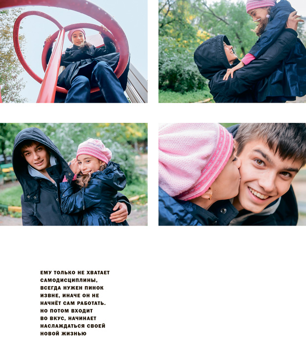 Кристя и все рядом с нейСовсем недавно, пять лет назад, в семью «прибилась» Кристина. Вернее, «пробилась», так как она достаточно долго и настойчиво просила нас взять её к себе. Познакомились мы в оздоровительном лагере «Азовское взморье», где в силу обстоятельств нам с сестрой пришлось взять шефство ещё и над группой ребят нашего детского дома (в качестве сопровождающих привезли на отдых группу опекаемых детей). Вот там-то за лагерную смену Кристя меня и высмотрела. Мы несколько раз с ней серьёзно разговаривали, я осторожно, чтобы не обидеть и не ранить девочку, пыталась отговорить её от этой затеи. Кристя была непоколебима, а я абсолютно точно поняла, что не имею права разрушить её веру в людей и в чудо. В конце лета снова собрался семейный совет, количество членов которого медленно, но верно разрасталось. Удалось найти веские слова, и все наши согласились, что воспитывать в себе чувство сострадания, ответственности, долга нужно и важно, но ещё нужнее и важнее подкреплять его соответствующими поступками. У Кристины тоже оказался тяжёлый диагноз, мешающий ей не только учиться, но и в прямом смысле слова жить. Сложной работы в семье уже никто не боялся, и плечом к плечу, плотно сдвинув наши ряды, принявшие в себя новую дочь и сестру, мы начали контрнаступление на болезнь. За пять лет совместных усилий нам удалось поступить в обычную общеобразовательную школу (вместо специальной коррекционной), удержаться в ней и закрепить свои позиции твёрдыми четвёрками. Каждый из нас, включая маленького Колю, занимался с Кристей чем мог и умел: старшие штудировали русский и математику, Люда – английский, параллельно обучая необходимым хозяйственным премудростям, Коля помогал систематически заучивать большое количество стихотворений и скороговорок, делился своими логопедическими умениями, усердно лепил, вырезал и играл с девочкой. Я же всегда находилась рядом и была готова в любую секунду прийти им на помощь делом, советом, добрым словом.