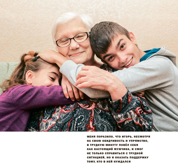 На майские праздники произошёл один случай, который поменял моё отношение ко всему. Бабушка оставила горящую свечку у себя в комнате и, забыв про неё, ушла в магазин. В доме никого не было, и скоро огонь со свечки перекинулся на другие предметы в комнате. Если бы не Игорь, то огонь распространился бы по всей квартире. Сын раньше пришёл домой, не растерялся, быстро потушил огонь, вызвал пожарников, а когда домой пришла бабушка и стала переживать из-за своей забывчивости, стал успокаивать её и поддерживать. Меня поразило, что Игорь, несмотря на свою обидчивость и упрямство, в трудную минуту повел себя как настоящий мужчина, и смог не только справиться с трудной ситуацией, но и оказать поддержку тому, кто в ней нуждался. Теперь, невзирая на сложности, которые у нас есть, я знаю, что в трудную минуту на него можно положиться, а это многого стоит.