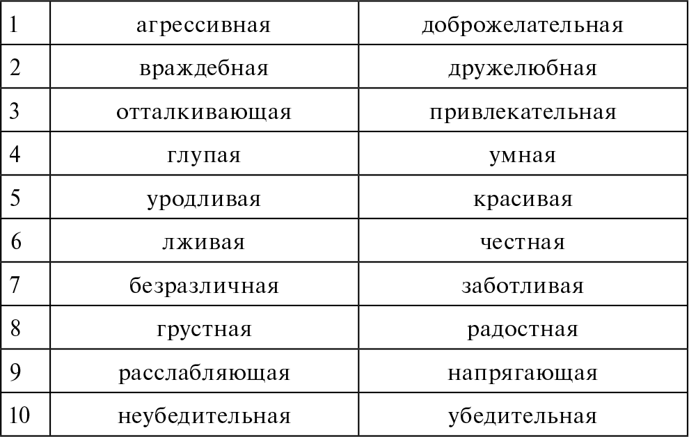 Таблица 1. Шкалы семантического дифференциала для проведения исследования