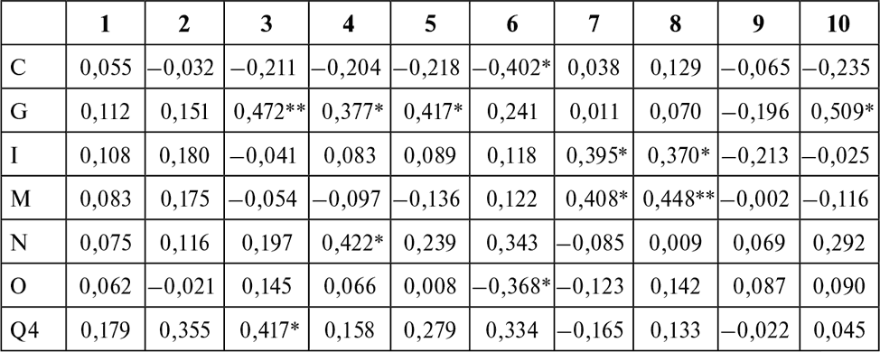 Исследование также выявило корреляцию между рядом факторов теста 16PF Кеттелла и некоторыми ответами на вопросы анкеты. Результаты представлены в таблице 2.