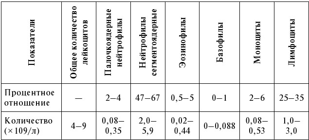Увеличение числа лейкоцитов в периферической крови выше нормального уровня называют лейкоцитозом, уменьшение – лейкопенией. Лейкоцитоз (лейкопения) редко характеризуется пропорциональным увеличением (уменьшением) числа лейкоцитов всех видов, например лейкоцитоз при сгущении крови. В большинстве случаев имеется увеличение числа (уменьшение) какого-либо одного типа клеток. Увеличение или уменьшение числа отдельных видов лейкоцитов в крови может быть относительным или абсолютным в зависимости от общего содержания лейкоцитов – нормального, повышенного или пониженного. Изменение числа, соотношения отдельных форм и морфологии лейкоцитов зависит от вида и вирулентности возбудителя, характера, течения и распространенности патологического процесса, индивидуальной реакции организма.