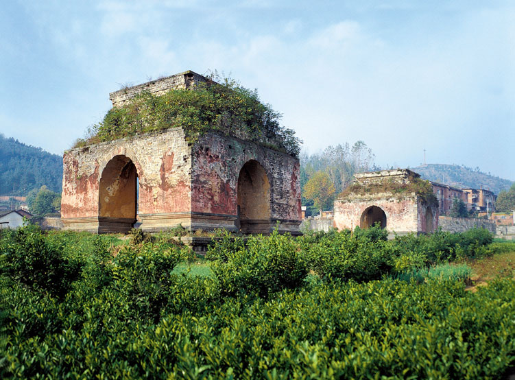 Руины павильонов Юйбэйтин («Павильон с императорской стелой») в монастыре Юйсюйгун («монастырь Нефритовой пустоты») на горе Уданшань