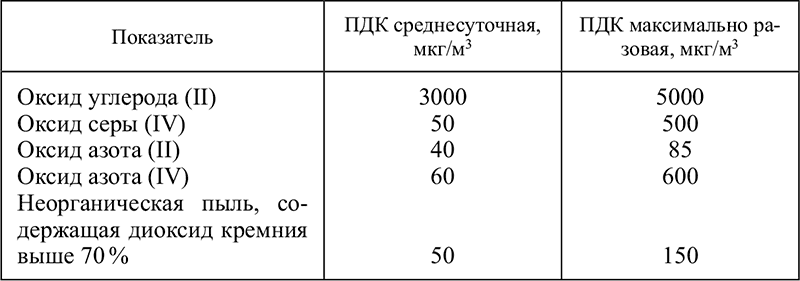 Таблица 1.2. Предельно допустимые концентрации вредных веществ в атмосферном воздухе населенных мест