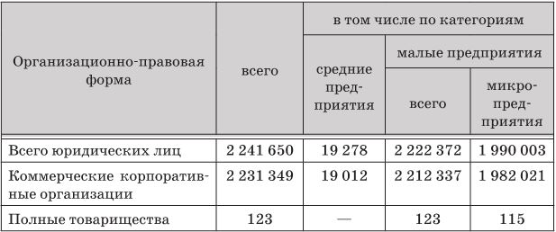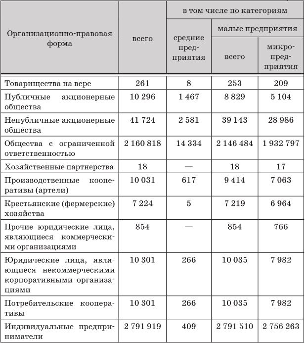 В подтверждение высказанного тезиса о принадлежности потребительских кооперативов к субъектам малого и среднего предпринимательства в таблице не указаны иные организационно-правовые формы юридических лиц, являющиеся некоммерческими корпоративными организациями.