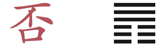Небесные и земные силы не находятся в согласии друг с другом, поэтому между людьми нет понимания, вещи не движутся свободно, а великий человек попадает в неблагоприятные условия, где ему трудно добиться успеха. Внутренняя триграмма состоит из слабых черт инь, а внешняя – из сильных черт ян. Поэтому влияние низменных людей возрастает, а влияние великого человека уменьшается.