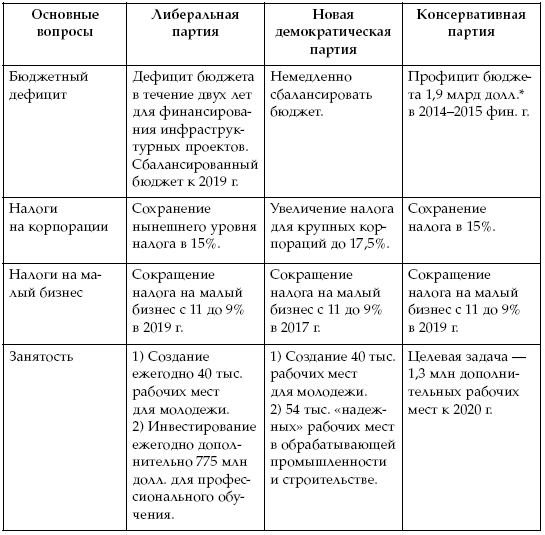 Основные положения предвыборной кампании 2015 г. у трех ведущих партий Канады
