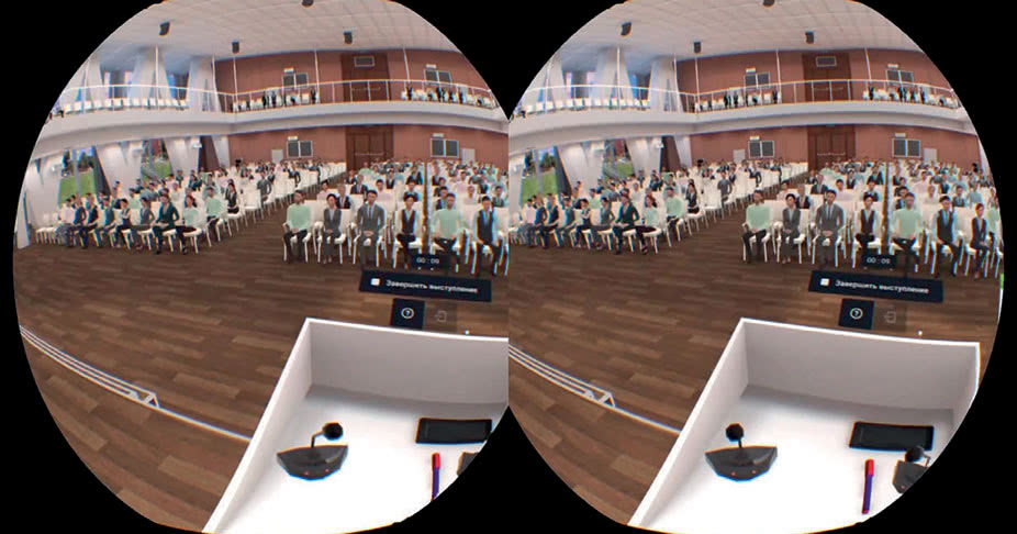 В рамках тренинга эффективных презентаций проходят фасилитируемую симуляцию SberSpeak (фото 3). В тренажере воссозданы три аудитории кампуса, в них присутствуют «зрители», которые могут отреагировать на действия спикера как угодно: встретить с восторгом, освистать, остаться равнодушными. Также в симуляции смоделированы вполне жизненные ситуации: во время презентации у кого-то зазвонит телефон, из-за сбоя электричества отключится проектор и т. д. Спикер, побывавший в самых разных, в том числе неприятных, виртуальных ситуациях, будет лучше подготовлен к реальным трудностям.