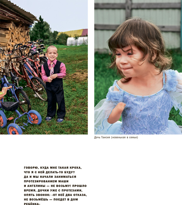 Дочка выросла, мы снова собрали документы и решили пополнить наше семейство ещё одной доченькой – Ангелиной. За этой малышкой я давно уже наблюдала и очень ждала, когда же она поедет в свою семью, но этого не происходило! Проблема в том, что у Ангелины отсутствует стопа и треть голени. Когда у нас уже была дома Машенька, я увидела на региональном сайте «Дети ждут» Ангелину, тоже 2009 года рождения. Я очень переживала за неё, но двух малышек одного возраста боялась не потянуть. И супругу я показывала малышку, но с такими словами: «Бедная, у Маши нет ручки – это ещё куда ни шло, но без ножки я никогда бы не взяла, наверное, сложно всё это».