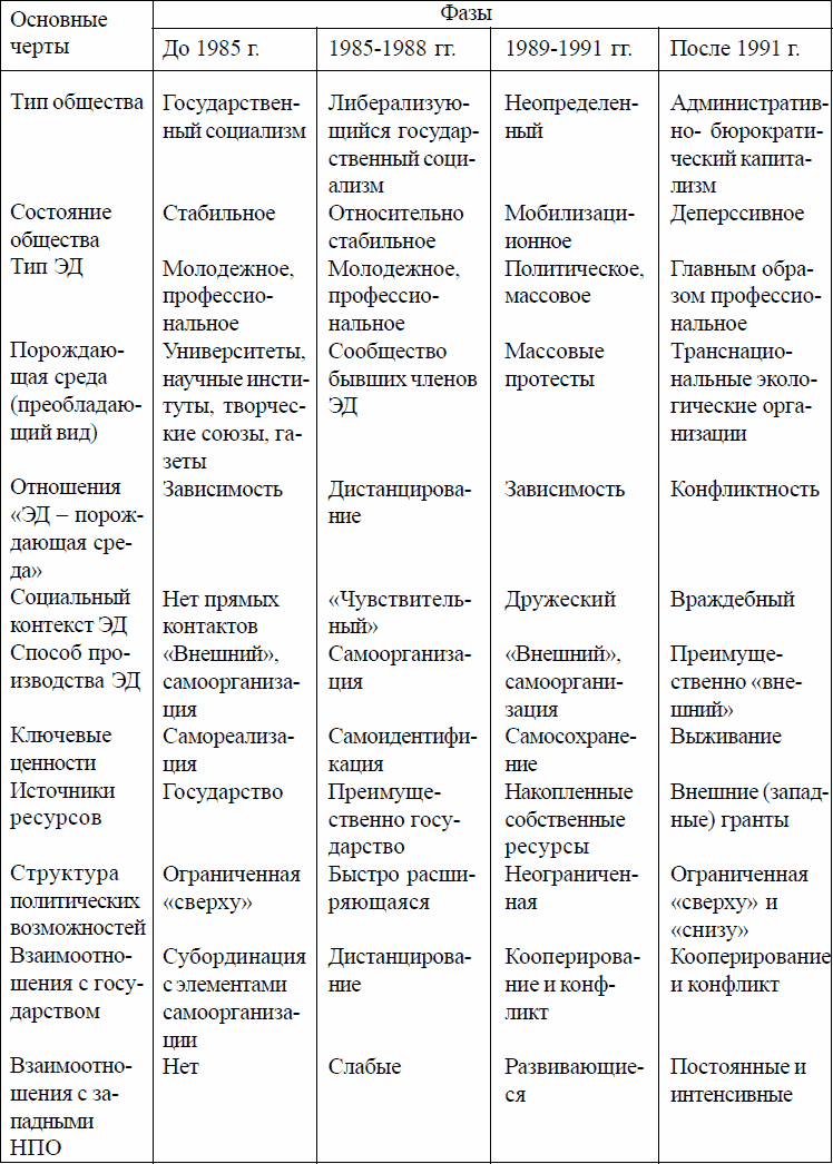 Таблица 3. Фазы развития российского экологического движения (ЭД)
