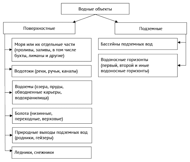 Согласно ст. 5 Водного кодекса РФ водное законодательство распространяется как на поверхностные, так и подземные водные объекты (рис. 1).
