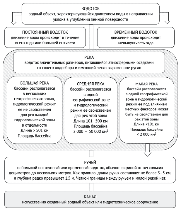 Рис. 2. Типы водотоков (по: ГОСТ 19179-73, ГОСТ Р 70214-22[29])
