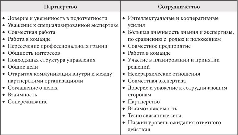 Таблица 1.1. Характеристики партнерства и сотрудничества