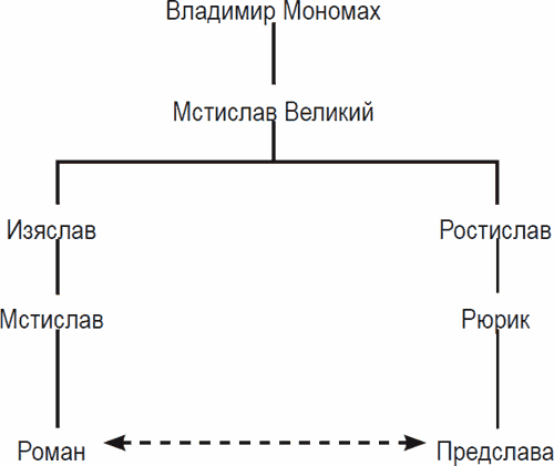 Рис. 3. Близкородственный брак Романа Мстиславича и Предславы Рюриковны