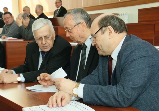 В. И. Пантелеев, С. А. Подлесный, В. Н. Тимофеев на заседании Ассоциации выпускников КПИ-КГТУ, 2016 г.