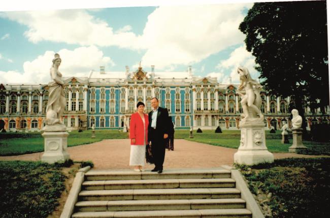 Наталья Николаевна и Сергей Антонович у Екатерининского дворца, г. Пушкин, 1997 г.