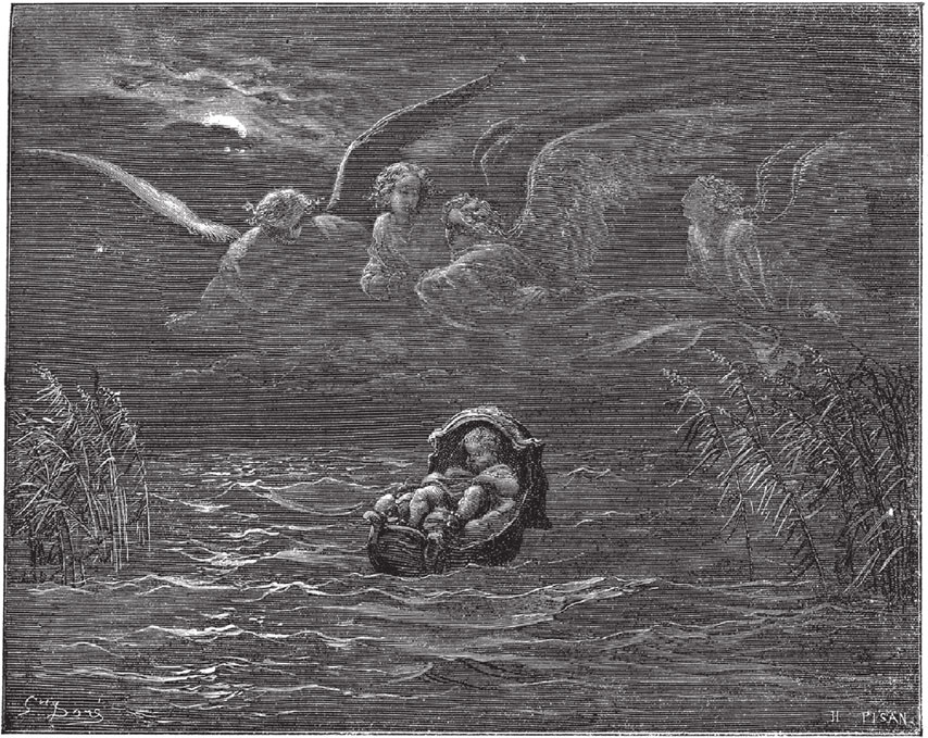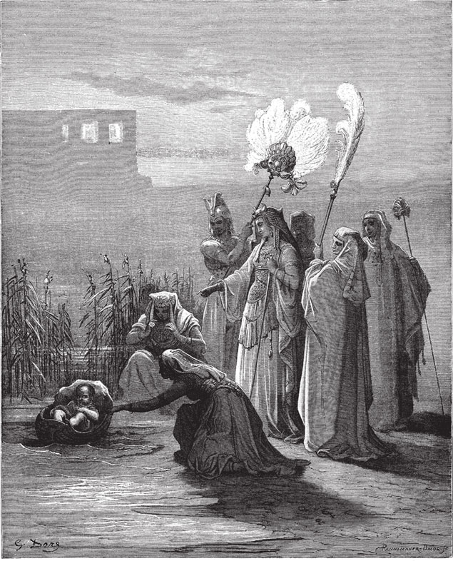 ДОЧЬ ФАРАОНА ПЕРЕД МЛАДЕНЦЕМ МОИСЕЕМ. ИСХОД, ГЛ. 2, СТ. 5–6. И вышла дочь Фараонова на реку мыться… Она увидела корзинку среди тростника и послала рабыню свою взять ее. Открыла и увидела младенца; и вот, дитя плачет [в корзинке]…