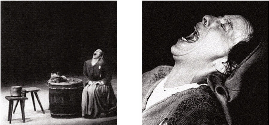 Безмолвный крик мамаши Кураж (Хелене Вайгель) в спектакле «Мамаша Кураж и ее дети» по пьесе Бертольта Брехта. Театр «Берлинер ансамбль», 1949