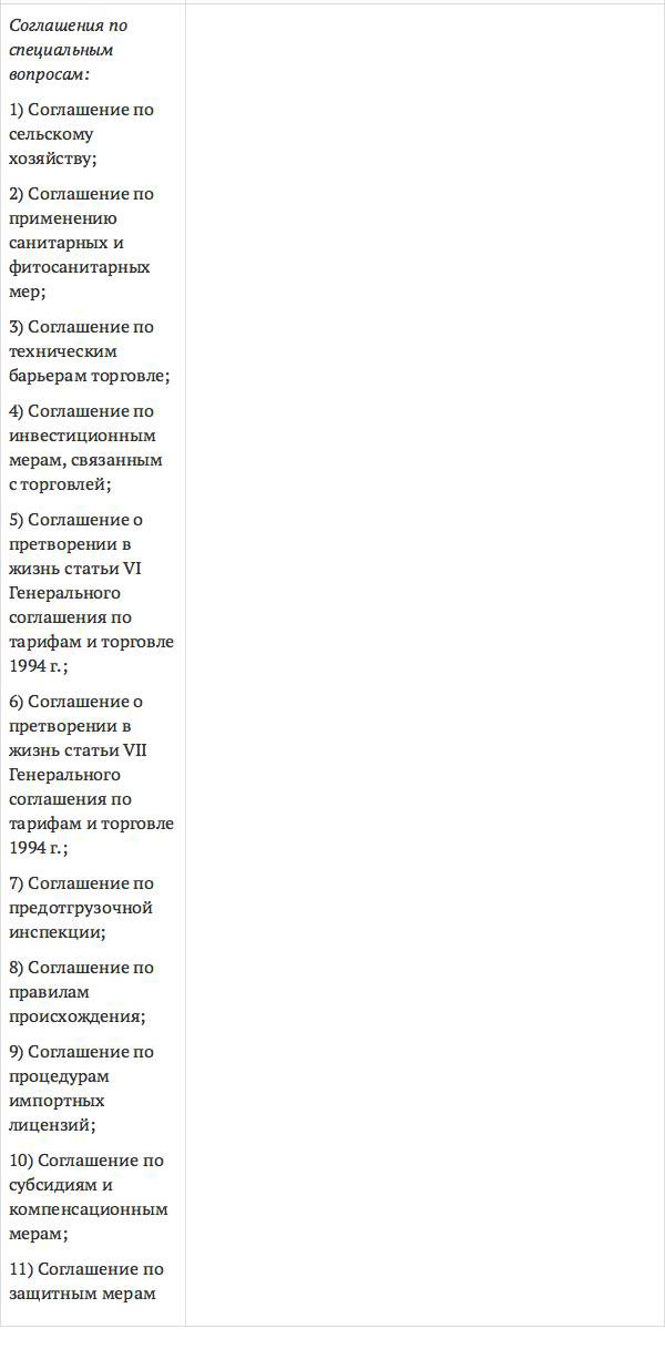 1) Договоренность о толковании пункта 1 «b» статьи II Генерального соглашения по тарифам и торговле 1994 г. (разъясняет ст. II ГАТТ «Перечни уступок»);