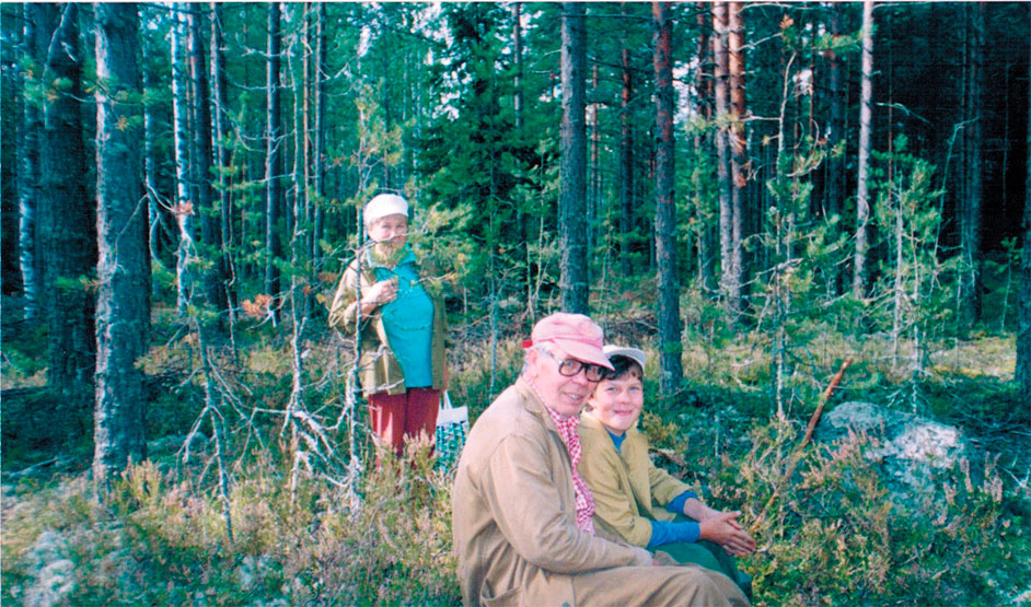 Иван Сергеевич и Антонина Федоровна с дочерью Татьяной в лесу в Лейпясуо. 2018