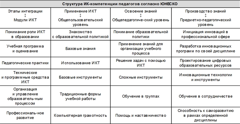 Структура ИКК педагогов согласно ЮНЕСКО и профессиональным стандартам