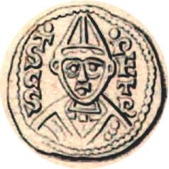 3. Прорись монеты папы Бенедикта VII (974–983). Источник: Promis D. Monete dei Romani Pontefici avanti il Mille. Torino, 1858. Tav. IX. Nr. 12.