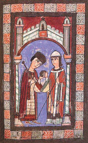 4. Император Генрих V и папа Пасхалий II. Миниатюра. Ок. 1100 г. Источник: Wikimedia Commons. URL: https://ru.wikipedia.org/wiki/%D0%A4%D0%B0%D0%B9%D0%BB: Paschalis.jpg.