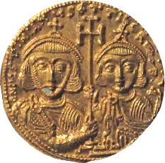 6. Солид с изображением Юстиниана II и Тиверия. 709–711 гг. Источник: Coin Archives. URL: https://commons.wikimedia.org/wiki/File: Monete_d%27oro_di_giustiniano_II_е_tiberio_IV,_705-711,_02,_5.jpg?uselang=ru.