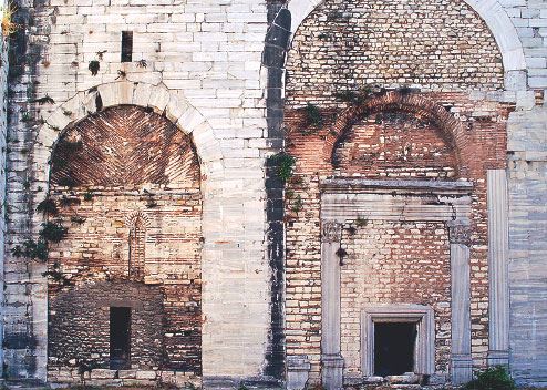 11. Пролеты Золотых ворот Константинополя, заложенные в XIII–XV вв. Вид с внутренней стороны. Источник: Wikimedia Commons. URL: https://commons.wikimedia.org/wiki/File: Turkey,_Istanbul,_The_Golden_Gate_(3945593229). jpg.