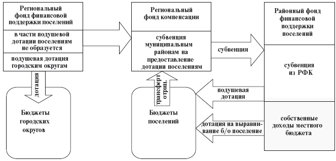 В бюджеты городских округов подушевые дотации поступают напрямую из регионального бюджета через региональный фонд финансовой поддержки поселений.
