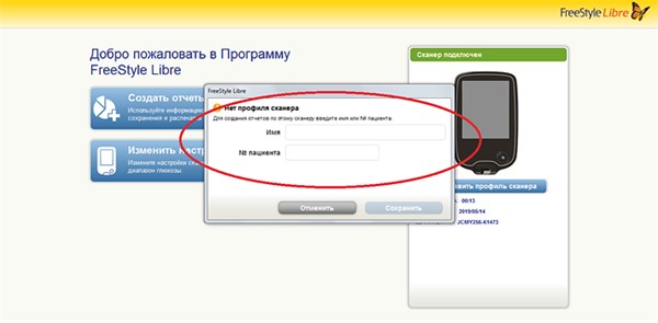 Рис. 1.7.3.1. Заполнение «Профиля сканера (флеш-дневника)» в приложения FreeStyle Libre