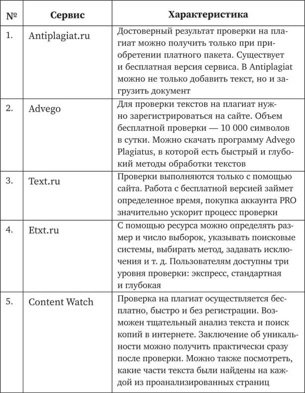 Среди бесплатных сервисов проверки выделяют text.ru, content-watch.ru, etxt.biz, advego.com.