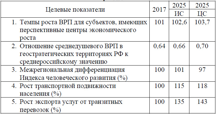 Целевые показатели пространственного развития РФ на период до 2025 года