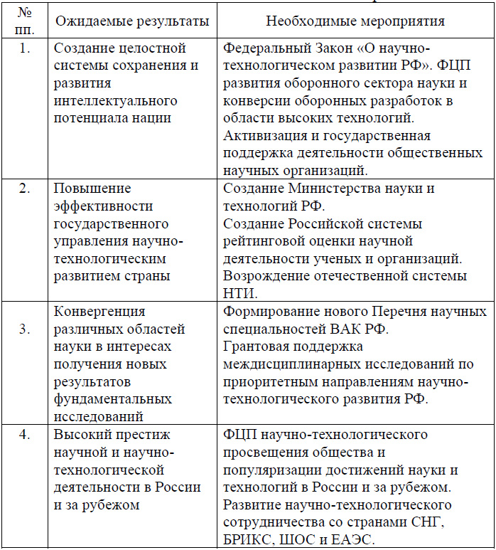 Одной из таких стратегических целей является переход России к новому технологическому укладу, основанному на развитии и широкомасштабном использовании новых технологий в основных сферах жизнедеятельности общества. Решению этой задачи должна содействовать реализация новой государственной программы научно-технологического развития России, результаты анализа которой приведены ниже.