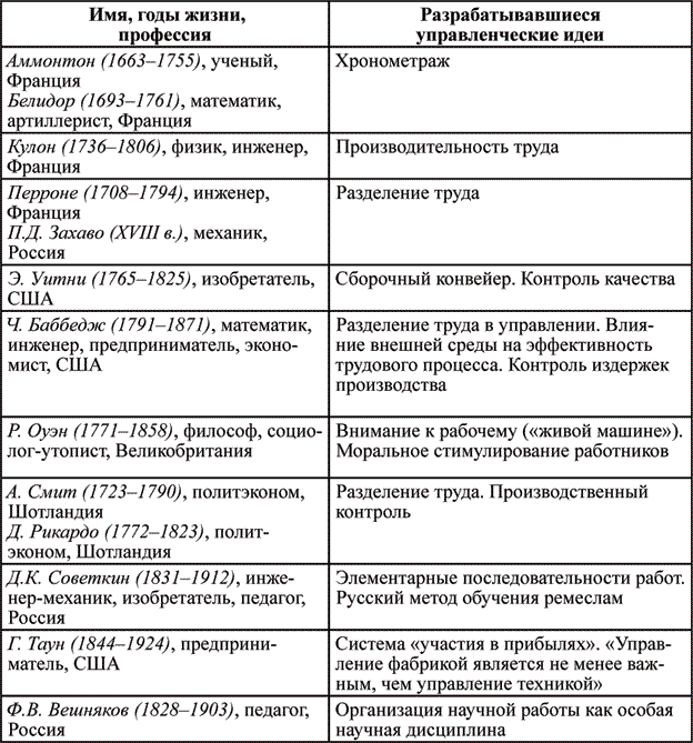 Таблица 1.1. Предтечи современного управления