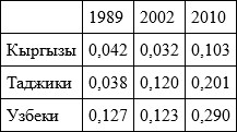 Таблица 7. Выходцы из Средней Азии в России по данным переписей 1989, 2002 и 2010 гг., млн человек