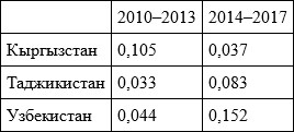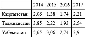 Таблица 9. Переводы физических лиц из России в Среднюю Азию в 2014–2017 гг., млрд долларов США