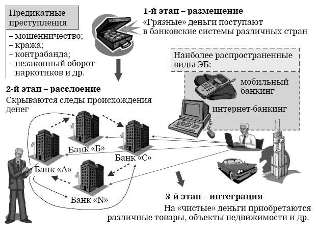 Рис. 25. Обобщенная схема отмывания денег с использованием СЭБ